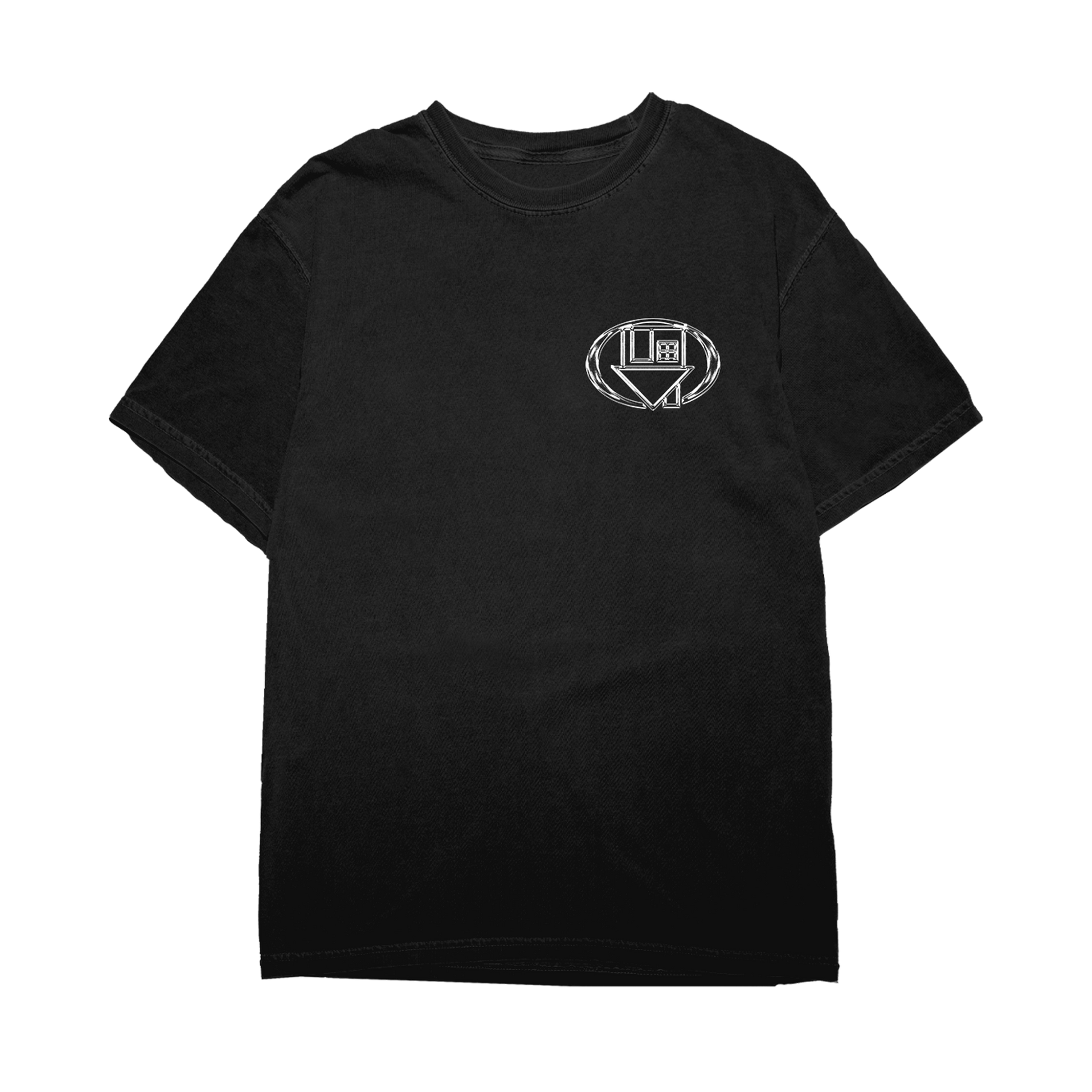 "Horsepower" design printed on the front and back of a black, 100% cotton heavyweight tee.